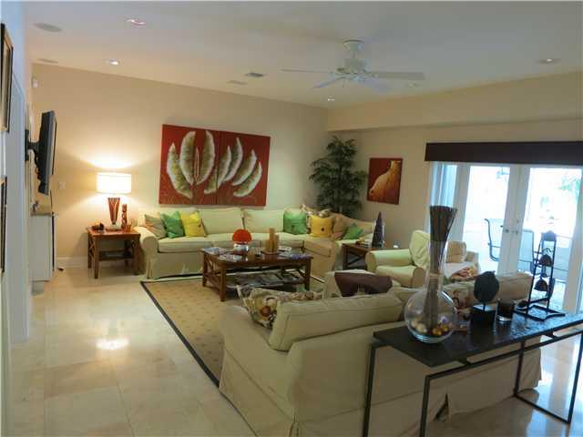 Move right in and enjoy all the ambiance of tropical elegant island living! 3 / 4 + den totally updated home featuring a see-through living room overlooking the covered terrace and private landscaped patio with full size, heated pool & outdoor BBQ area. The chef's kitchen is highlighted by a Miele stove with GE Monogram chimney hood, top-of-the-line Kitchen Aid appliances + large wine cooler. Marble flooring, all marble bathrooms, separate dining + spacious master suite. Beach Club membership inc.