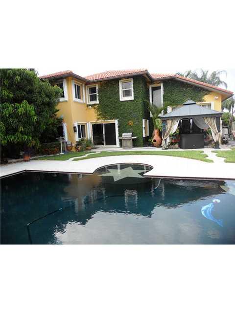 FABULOUS POOL HOME - 4BEDROOMS,2.5 BATHS.MARBLE&LAMINATE FLOORS.UPDATED KITCHEN,GRANITE COUNTERS&BACKSPLASH, UPDATED BATHROOMS,DINING AREA CONVERTED TO DEN/OFFICE WITH FRENCH SLIDING DOORS -CAN EASILY CONVERT BACK.UPGRADED MASTERBATH WITH RAINSHOWER,JACUZ ZI TUB,DOUBLE CUSTOM-SINK,LARGE MASTER BEDROOM WITH GORGEOUS WATERVIEWS,TRAY CEILING,WALK-IN CLOSETS,ACCORDEON SHUTTERS,BEAUTIFUL TROPICAL BACKYARD, SALTWATER POOL GRANITE SEATS&INLAYS,EXTRA STEEL ENFORCED.NO NEIGHBORS IN BACK!SEE REMARKS.