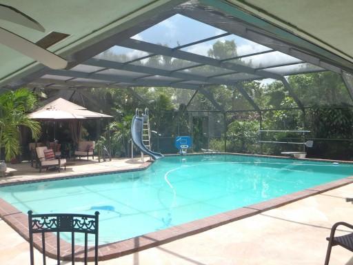 Beautiful home in old plantation. Located on North Fig Tree with Canopy streets and a peaceful mature neiborhood. The house sets in a tropical yard with an oversized screened in pool and back patio surrounded by tropical foliage giving you wonderful priv acy. This 4 bedroom home has new wooden floors and crown molding, an open flr plan & natural lighting. The split floor plan and oversized great room is ideal for entertaining. Bimini shutters, 5 yr old architecural shingle roof wlifetime warranty.
