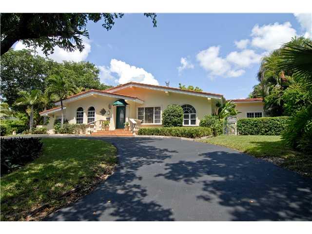 Absolutely charming Gables home recently renovated and expanded with volume ceilings and expansive french doors creating a light bright ambience with a stunning garden view. Gorgeous wood floors, open kitchen/family room, formal living and dining rooms. F eatures include a spacious master suite with sitting room/office, exercise room and fabulous walk-in closets, triple split floor plan, each bedroom with it's own bathroom. This home is beautifully renovated and a pleasure to show.