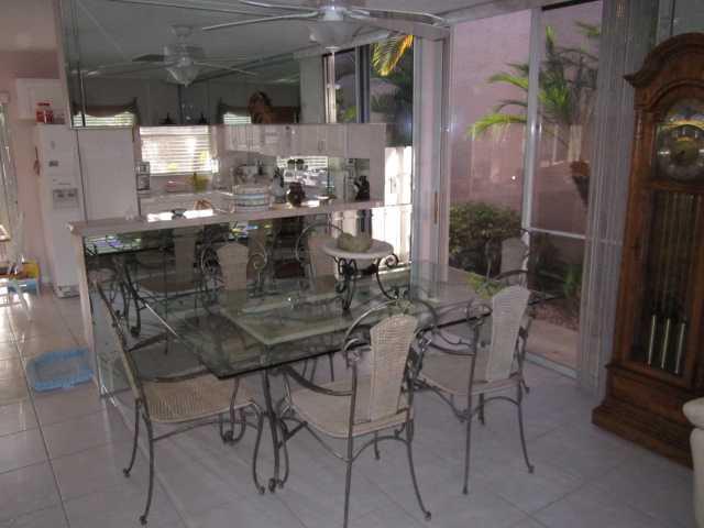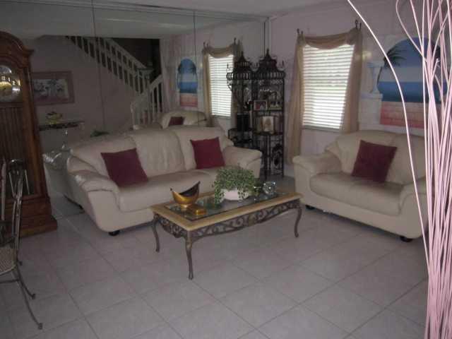 This home shows like a model. 4 bedrooms 2 1/2 bathrooms. Remodeled kitchen w/ newer appliances. Bathrooms remodeled. Huge master bedroom with sitting area. Brand new roof and A/C. Living room and family room. Accordion hurricane shutters. Large screened patio overlooking lush landscaping and palm trees. Home is located on a cul-de-sac street in a great community with pool. One car garage. This home has been cared for and it really shows. This will sell quick....make an offer now.