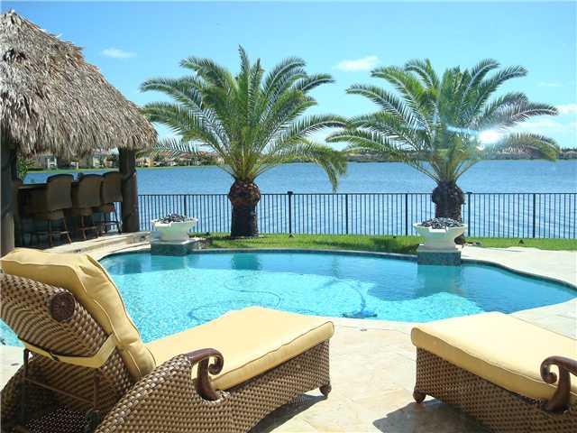 Sunset Falls...Laurena Model! This 6 bedroom, 4 bath, 3 car garage home is absolutely gorgeous. Stunning lake view features 15 x 30 heated salt water pool with jacuzzi, pool fountains and an incredible Tiki Hut area with a complete bar area. Mist system, fenced, tumble marble terrace with Bose music system and special lighting. Inside, Express maduro chesnut brazilian hardwood floors, customized paint, stainless steel appliances, crown molding throughout, impact glass doors and accordion shutters.
