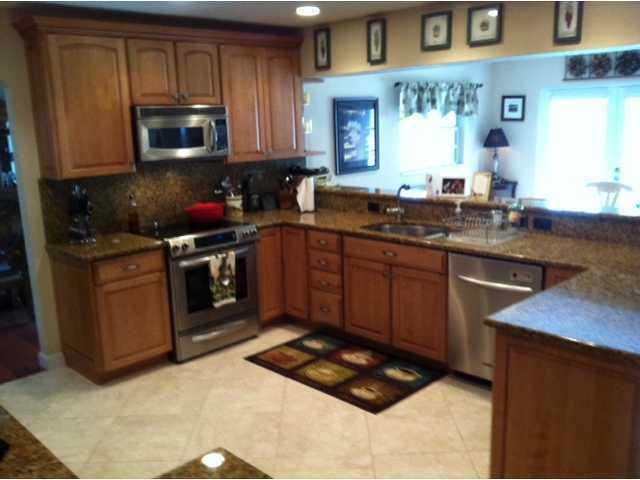 Lakefront, 4bed/3bath, oversized 2 CG, free form pool, over 1/3 acre lot, new dock (great fishing)...pristine condition..recently upgraded..new kitchen,(granite, Maple cabinets, appliances) new bathrooms, new windows and metal french doors... new Trane A/ C system...tile and wood floors..barrel tile roof...circle drive...extra long concrete slab (approx 1600' sf) N. side, (boat storage)fenced...full hurricane shutters for all the windows..security system..totally a move-in condition home..taxes $3700.
