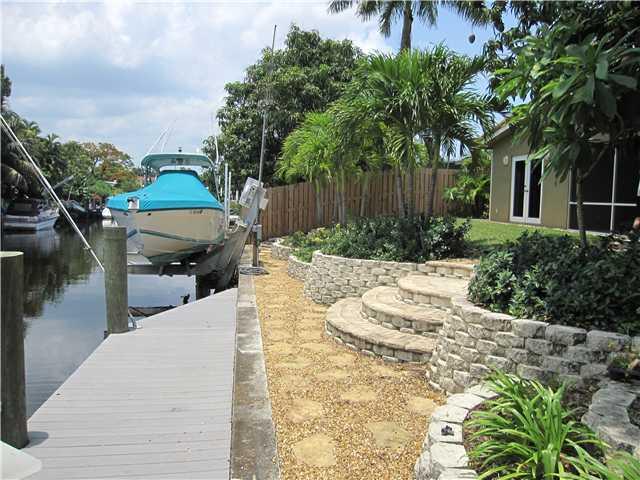 OCEAN ACCESS-NO FIXED BRIDGES w/impact doors & windows, custom Kitchen w/huge island/bar & tiled counterS. Vaulted ceilings in Living & Dining. 2 sets of french drs out w/65 feet of water from kitchen & dining. New Master Suite w/1 set of French doors dir ectly out to water & 1 set to patio. Master bath has 2 vanities & 2 shower heads. Stamped concrete double driveway*Huge Screened/covered/vaulted Patio w/marble floors*15k lb lift-220v serv/water & power on 30ft composite deck.