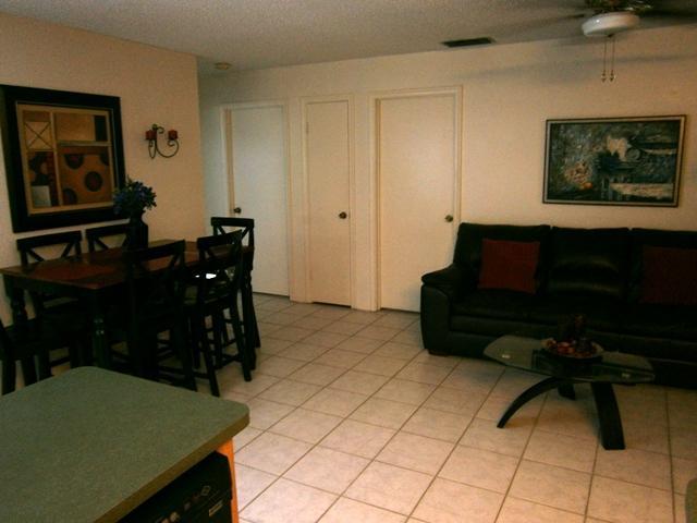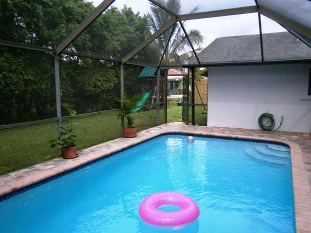 Wow! Don't miss! Upgraded home faces beautiful lake view Spacious 4 bedroom 2 bath home with 2 car garage. Heated screened pool. Pool heater only 4 years old so you can enjoy your pool year-round. Large enclosed upgraded patio area. Large private fe nced yard with a nice lawn and swingset. Nice size bedrooms with walk-in closets. Split bedroom plan. Living room, dining area and family room. Newer kitchen appliances. Crush resistant carpeting. Hurricane shutters. Pets welcome. No HOA.