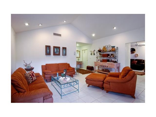 Meticulous 3/2 one story set on private lot backing green area & no side neighbors, ACCORDION shutters,roof 2005, A/C 2005, bamboo floors & Plantation shutters in master bed, tastefully updated master bath, newer appliances incl double wall oven & SS ref, knockdown on ceilings & walls,fully fenced yard landscaped w/robelinis, 21x18 tiled, screened & roofed patio, steps to community pool, HOA fees includes lawn maintenance & watering of lawn.