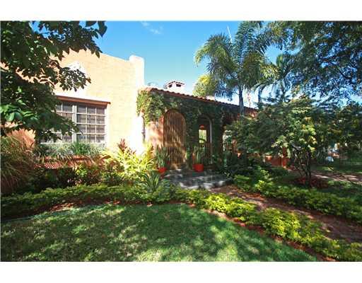 Absolutely adorable and charming Old Spanish home on dead-end street in North Gables. This 2 bedroom/1 bath home is just under 1500 square feet on a 5,000 square foot lot. Built in 1924, and lovingly restored, the home features a beautiful covered entry p orch with arched wood openings. Inside, there's a living room w/fireplace, formal dining room, original wood floors throughout and French doors leading to a cozy wood deck and private garden. Detached garage convertible to in-laws quarters.