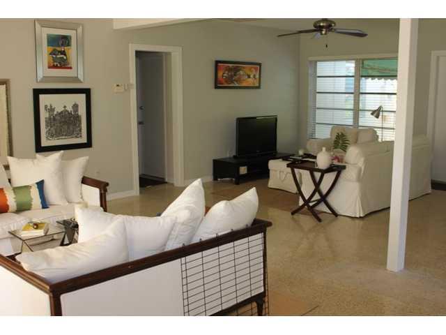 Light bright and airy renovated home with MiMo feel in serene Miami Shores location on tree-lined street. Open floor plan with lots of windows, exquisite terrazzo floors throughout, newer kitchen with wood/granite/stainless steel appliances, large bedroom s, master suite with walk-in closet and large master bath renovated with high-end fixtures and fittings, luxurious shower with river rock and terrazzo, spacious yard, 1-car garage.