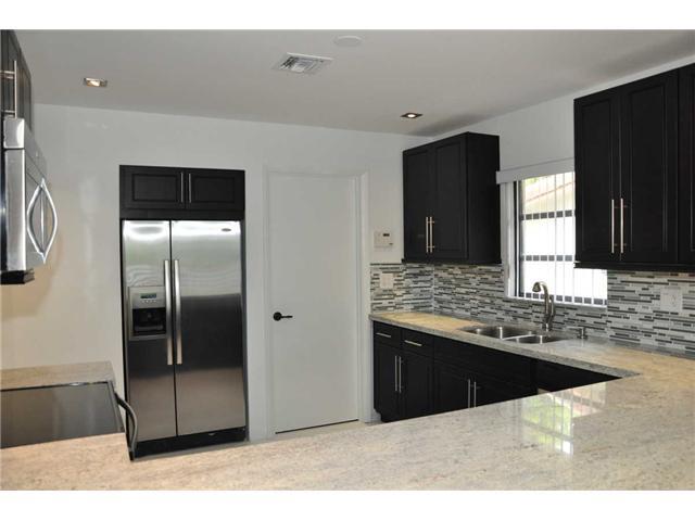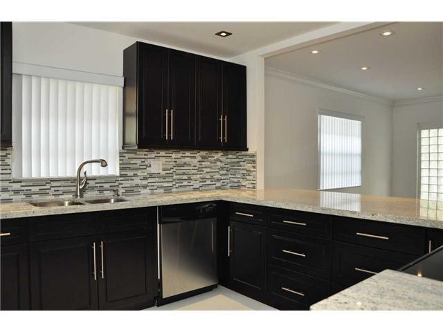 Upscale renovations. Updated 3 bed/ 2 bath home with 2 car garage in the prime Hollywood Lakes area. Engineered wood floors. Spectacular updated kitchen with stainless steel appliances, solid wood cabinets, white cashmere granite counter tops, and glass t ile backsplash. Beautiful marble flooring. Crown molding in living room and family room. Recessed lights in the entire home. Master bedroom features large walk in closet, large bathroom with shower and jacuzzi tub. New roof.