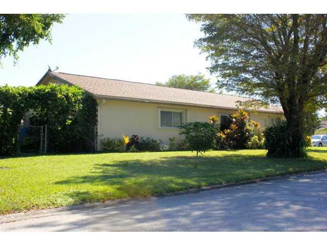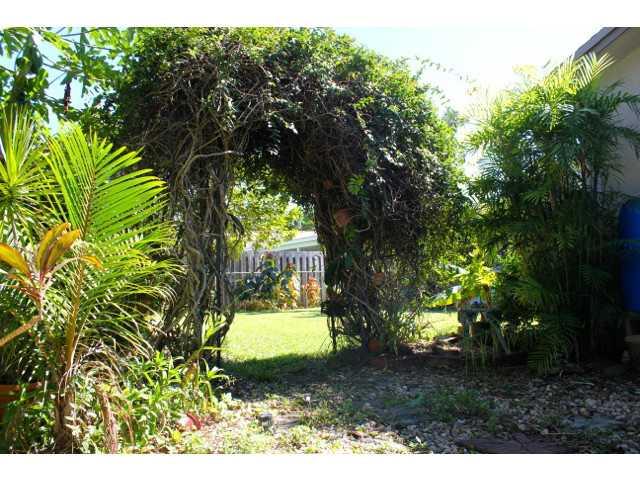 This gorgeous 4 bedroom, 2 bathroom home on large corner lot in a quiet community, sits on a beautiful lot of over 0.2 acres, with majestic mature trees, a vegetable/flower garden on one side in the back and a picnic table on the other side, shaded by bo ugainvillea. There is a beautifully functional kitchen with Granite Counter tops and custom cabinets. It has upgraded bathrooms, French sliding glass doors, accordion shutters, stylish interior accents, bright and spacious family room.