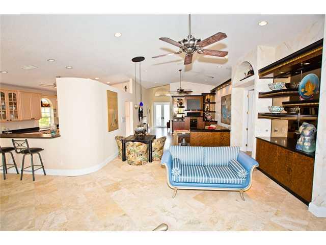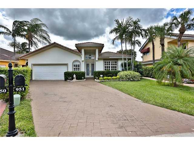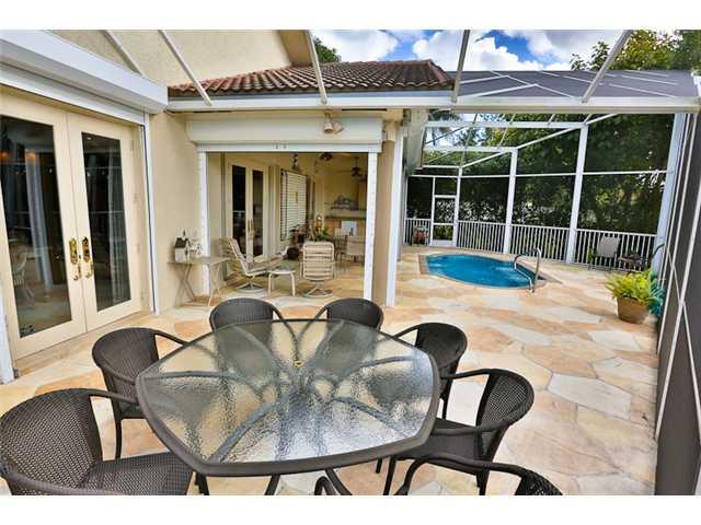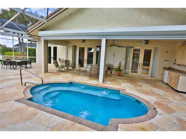 Gorgeous lake and golf views from this immaculate 3/3 in Jacaranda Cove! Home features pool with jets, newer roof, hurricane shutters, tiled garage, vaulted ceilings, huge kitchen with island, flat-top stove and breakfast bar, two-sided fireplace, two wal k-in closets in the master and so much more! Very quiet, gated neighborhood. Make us an offer today!