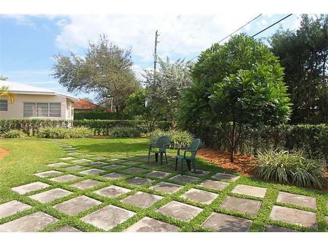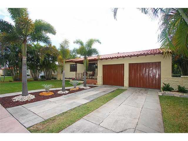 "Thirty Six Palermo" Urban living in Coral Gables' Gallery Row neighborhood. Clean and crisp 1-story ranch with rare 2-car garage + service road at rear. All the warm and fuzzies are here with the wood floors, 40's tilework in family room and some deco hi ghlights. Roof is 6 yrs old and A/C also around 6. Termite warranty is in effect. 2-car garage has gardener's bath. Plenty of room for addition on this 7500 sf lot. Great Price!