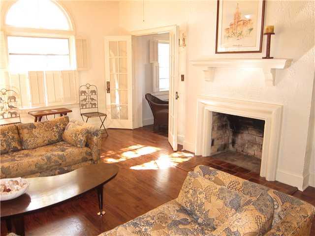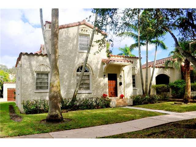Charming 2-story old Spanish in the Golden Triangle of Gables(between Anastasia to the north and Bird to the south,Granada to west & Toledo east).On a block long street in one of the safest areas of CG. Enter foyer, LR with fireplace and dining room beyon d. Small den. Kitchen with breakfast area. Two bedrooms down with hall bath,two bedrooms up with hall bath; master has extra sink in dressing area & walk-in closet. Wd flrs.Garage in rear but narrow drive to it.FIRM PRICE. Needs central a/c. Rm for pool.