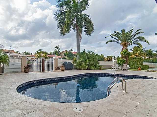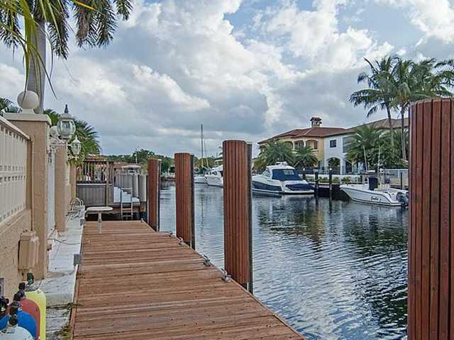 This beautiful waterfront home is located in the guard-gated community of Eastern Shores and is just minutes to the Beach. Huge dock that can handle up to 160FT yacht and be on the Intracoastal waterway in minutes. Concrete privacy wall surrounds the prop erty. This home is on a double lot with lighted tennis court. High ceilings in living room with real coral rock wall. Master suite w/his & her WIC. Steam shower. All tiled pool. Storm Shutters. Top rated schools. Walk to shopping, dining, movies.