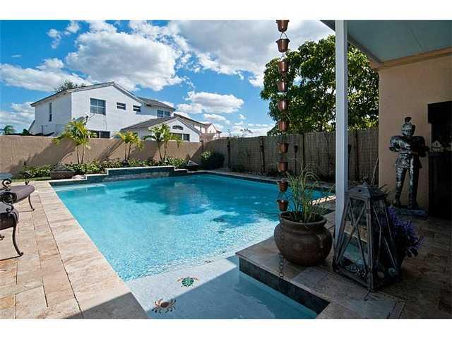 WoW! This house has it all! tastefully updated 4/3 home, 4 mos. new 27x22 pool w/waterfall, jets & swimouts. Kitchen w/wood cabinets, butler's pantry, stainless steel appliances, granite. laminate flooring everywhere,remodeled bathrooms with designer tile & granite. Appointed with crown molding & textured walls. Spacious fenced yard, travertine walkway, patio & deck. great for entertaining. Accordion shutters. Garage has a/c & can be used as bonus room or converted back. Community pool. A MUST SEE!