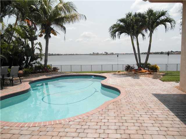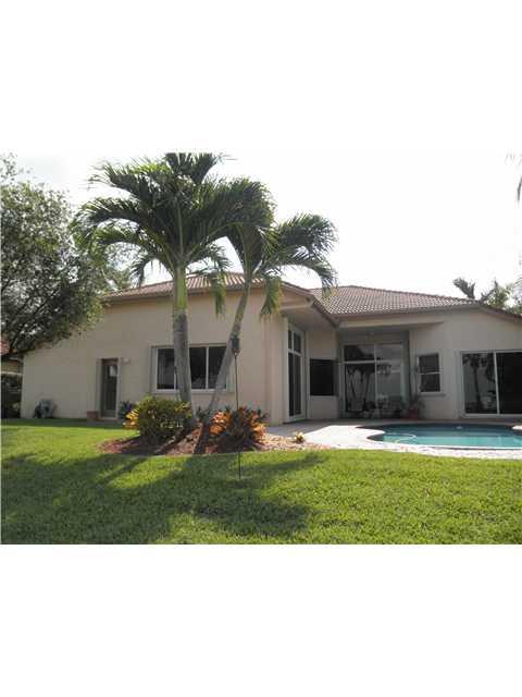 Georgeous 1 story home with resort like backyard, pool and amazing 1 mile view! 4 bedrooms plus Den and 3 baths, gourmet kitchen, 42" wood cabinets, stainless steel appliances, granite countertop, wood floor in Master, accordion shutters, and much more! L ocated in a quiet street next to a cul-de-sac and very close to the Club House.