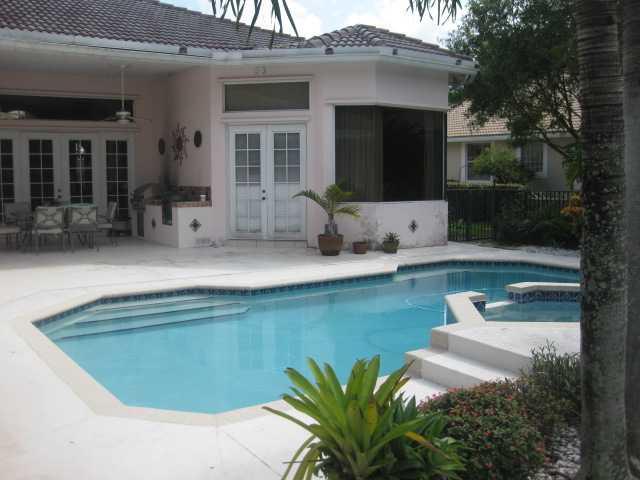 BEAUTIFUL POOL HOME IN PRESTIGIOUS EAGLE TRACE! LARGE OPEN FLOOR PLAN WITH A GREAT FLOW THROUGHOUT THE HOME. VOLUME CEILINGS, FRENCH DOORS, PLANT SHELVES, HIGH BASEBOARDS, HUGE CUSTOM KITCHEN WITH S/S APPLIANCES AND GRANITE COUNTER-TOPS. LARGE PRIVATE COR NER LOT ON A CU-DE-SAC STREET. LUSH SHRUBBERY AND FRUIT TREES SURROUND WONDERFUL GAZEBO AND KOI POND. FABULOUS POOL/SPA AREA. GREAT YARD FOR PARTIES! NICE VIEW OF THE GOLF COURSE. GREAT SCHOOLS! MUST SEE TO BELIEVE! MUST USE SELLER'S TITLE COMPANY.