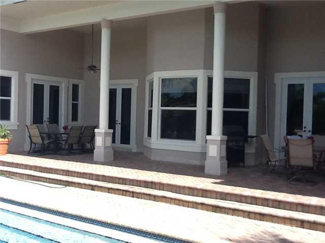 Beautiful Two-Story Waterfront Custom Home in GABLES-BY-THE-SEA, featuring 5 bedrooms and 3-1/2 baths with a fantastic split plan. It is perfect for a large family or for In-Laws. Huge covered terrace overlooking the pool and lagoon. Spacious open kitchen with granite tops and top of the line Appliances. Working Fireplace. Two Covered Garages with room for 2 cars each. Two Extra Large Storage Rooms, one on each side of the house. Cable is available including AT& U-Verse.