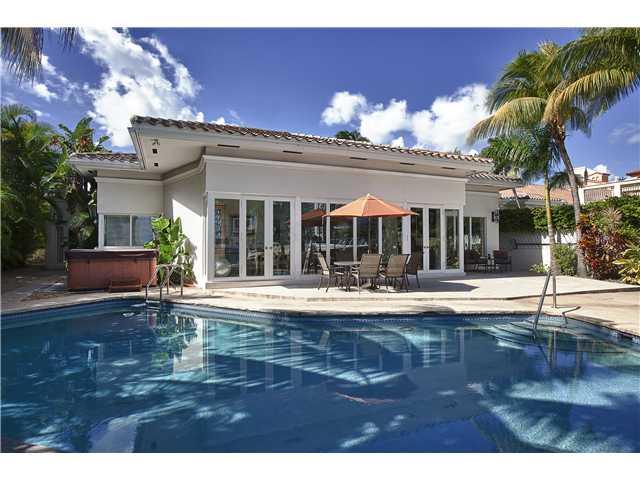 Stunning waterfront home with +/-78' of WF & open and spacious floorplan, re-built in 2007. No expense spared to create a modern 6 bedroom/5 bath home with high ceilings, marble flooring and bathrooms, separate wing for children' bedrooms, & gourmet kitch en with stainless steel appliances. Electric gated circular driveway can accommodate over 8 cars. Amenities include lush tropical landscaping, wonderful pool, dock and boat lift.