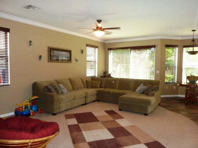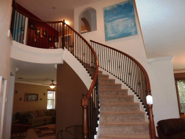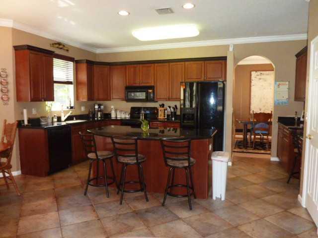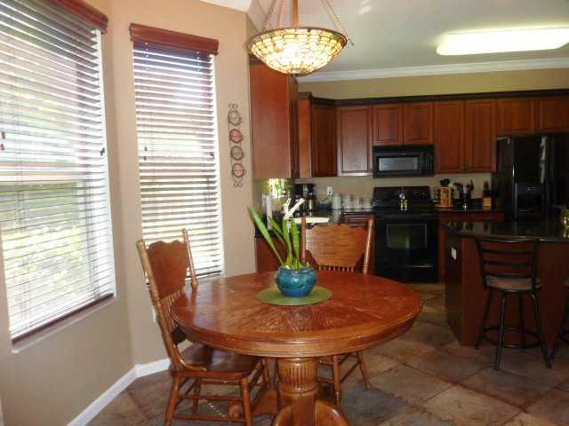 Superb 5 BR, 2.5 Bath home in the manned-gated resort-level community of Riviera Isles. Gorgeous upgraded eat-in granite & wood gourmet kitchen w/ matching island b-fast bar, super top-line bathrooms. Many other upgrades incl lighting, window dressings & wrought iron/wood bannister circular staircase. Double sets of sliding glass doors open to covered patio & tropically landscaped yard. Resort-like community amenities include pool w/ waterfall, clubhouse, fitness center, tennis, much more. Grade A Schools