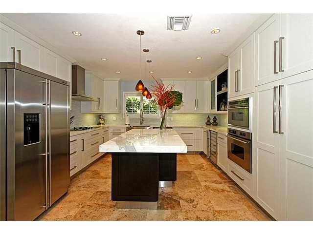 Perfectly renovated 4Br/3Ba in great S Gables neighborhood w/warm, contemporary feel! Open & lg living spaces w/formal liv & din rms opening to fam rm. State-of-the-art kitchen w/Calacatta gold marble counters, stainless appls, wine fridge & custom wood c abinets. Exquisite master addition features a den, spacious BR & beautifully finished bath w/his & hers sinks & walk-in closet. Outdoor Chicago brick patio surrounds the beautiful free-form pool & expansive yard. Marble & hdwd flrs thruout; 2-car gar.