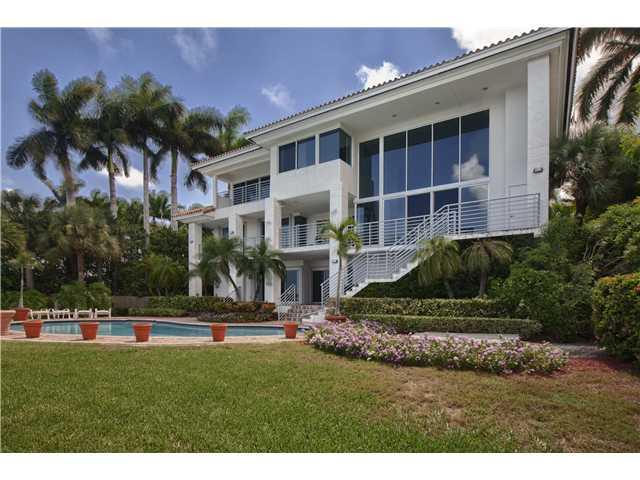 Unique, tri-level, 5BR/4+1 BA waterfront home. Open layout of living, dining and family rooms with 20+ foot ceilings. Floor to ceiling windows with great waterfrnt views. Travertine Navonia and Porcelain tile flrs. Zebra wood custom tables & stair railing . Most rooms w/water views, access to covered balcony. Pool, spa surrounded by tumbled marble. First level with regulation Brunswick pool table, bar, 1BR/1BA plus additional 1400 SF basement, which can be recording studio, rec room, +/-110ft on the water.
