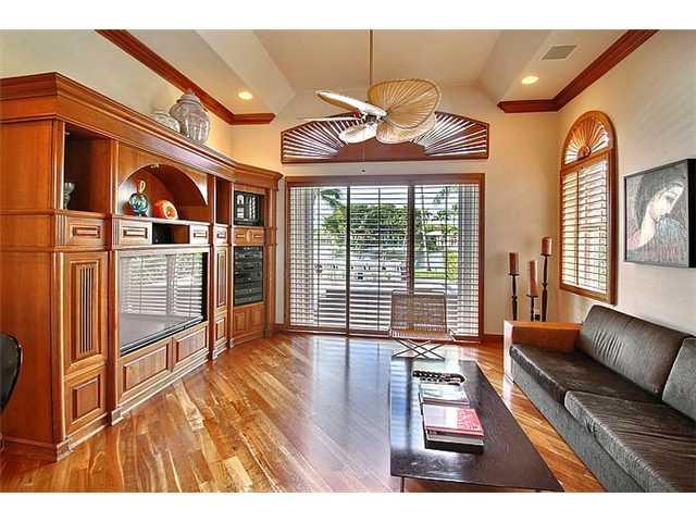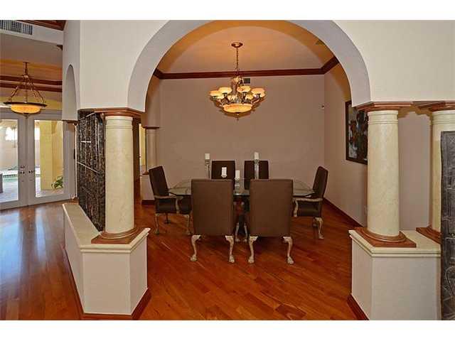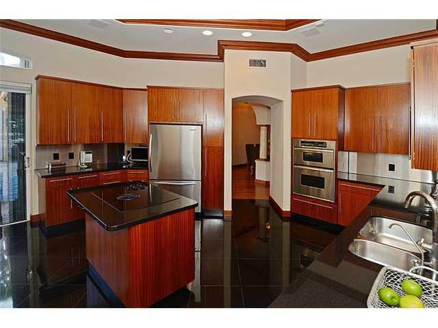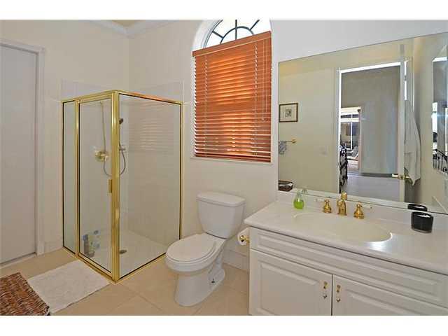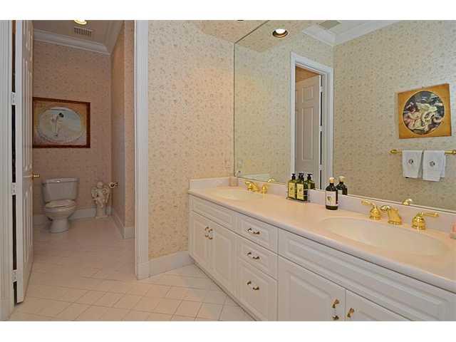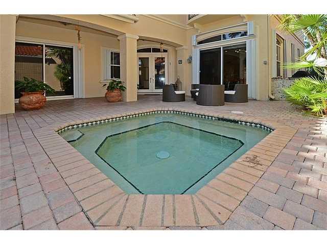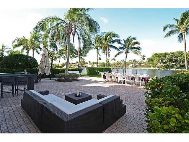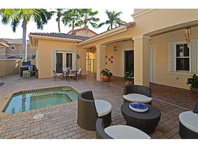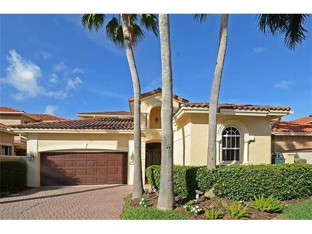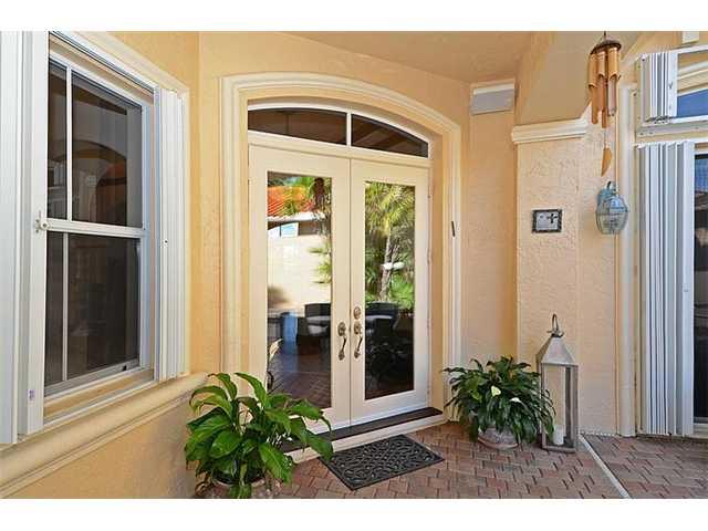 Most beautiful, luxury home in prestigious gated community.Courtyard home features many upgrades, gourmet kitchen, marble floors in kitchen area, cherry wood in main living areas floors, crown moldings, surround sound.Remodeled master bath. Master and 2 b edrooms upstairs.Balcony from master bedroom has beautiful water view. Detached guest bedroom and bathroom. Great open patio facing the water, which is an excellent area for entertaining. No Dock, however there is a marina in community for your boat.