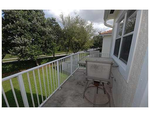 Beautiful home on a pie shaped lot with Tropical Landscape, A unique floorplan, with guest quarters, living room, dining area, gourmet kitchen with 42in white cabinets,island and pantry.Sliding glass doors lead to a covered patio.Upstairs has family room with wood floors, media niche, and a balcony with tranquil scenery. Spacious mstr suite with walk-in closets and built ins, dual sinks, roman tub.California cabinets great for displays.Second balcony from bdrm to relax and enjoy! Home is Amazing!