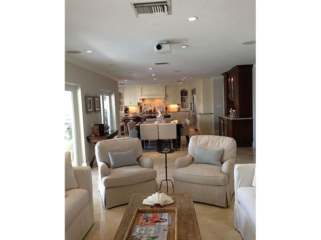 This better than new custom remodel has 4/3 + office, 100' seawall, 40' dock, no bridges to bay. The interior was completely redesigned including chef's dream kitchen with Wolf gas stove, Subzero wine cooler and ice maker, Miele DW and coffee maker. Jeru salem stone marble floors throughout, recessed lighting, custom moldings, custom infinity pool with tumblestone waterfall and marble terraces. Owner/Agent please give notice for private appointment.