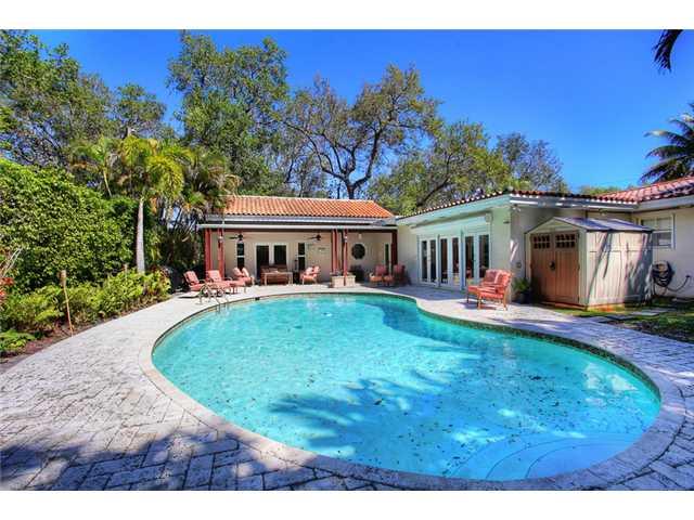 This elegantly remodeled South Gables 5/4, pool home offers incredible features like gorgeous wood floors, designer open kitchen w/SS appliances, luxurious master suite w/volume ceilings, his and hers master bath and walk-in closets. The spacious social a reas have beautiful views of the yard and heated pool making the house perfect for entertainment. A split plan design presents one en-suite room and master on one side and one en-suite and 2 bedrooms plus bath on the other.