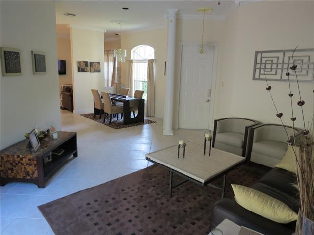 2 bedroom + den, which can be converted into 3rd bedroom. Prestigious and desirable community. Custom home with large back yard, patio and a pool. Open floor, 2 car garage, 12 ft ceilings. Hurricane shutters throughout. Master bedroom walks out to the poo l and patio area. Exclusive gated community. Magnificent clubhouse, state of the art fitness center, community pool, tennis and basketball courts. Access to 190 slip marina.