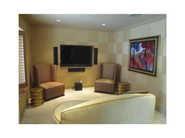 Beautiful three bedroom two bath designer home with family/media room. Crown molding & marble floors with mosaics insets throughout. New gourmet kitchen w/dbl ovens. Recessed lighting in living areas. Advanced sound system with individual controls in eac h room & outside. Spacious covered patios in front and back yards. Professionally designed landscaping & exterior lighting. New Impact windows with Interior wooden shutter window treatments throughout. Private Pool deck & dock with nice views of waterway.