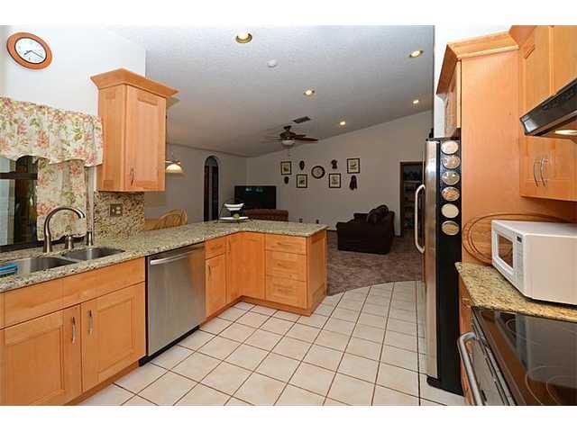 Back on market!Great corner lot with many upgrades. Kitchen recently redone with stainless steel appliances,granite counters & full backsplash. All wood tall kitchen cabinets with soft close doors & drawers. Both bathrooms redone. Master is a cabana bath with marble tile & mosaic inlay..Screened in diamond brite pool with new pump,tile & deck. Split floor plan . Walk in closets in master & second bedroom .Second bedroom also has brazilian cherry wood floors. Newer barrel tile roof.. Beautiful patio area.