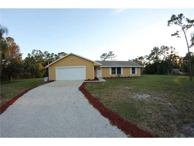 GORGEOUS 3BEDROOM, 2BATH SINGLE FAMILY HOME W. ATTD 2 CAR GARAGE. GREAT LAYOUT. NEW 24 INCH PORCELAIN TILE THROUGHOUT. NEW CABINETS & COUNTERS IN KITCHEN & BATHS. NEW STAINLESS STEEL APPLIANCES TO BE INSTALLED PRIOR TO CLOSING. FRESHLY PAINTED. UPDATED BA THS. NEW LANDSCAPING. PLENTY OF STORAGE SPACE. SLIDING GLASS DOOR LEADS OUT TO LARGE FENCED IN YARD W. PATIO. 1+ ACRE, HIGH & DRY LOT. ROOM FOR BOAT/TRUCK. *MOVE IN READY**FHA OK* MONTHLY MTG PYMT ONLY $1,300! AMAZING PROPERTY IN ROYAL PALM BEACH! NO HOA