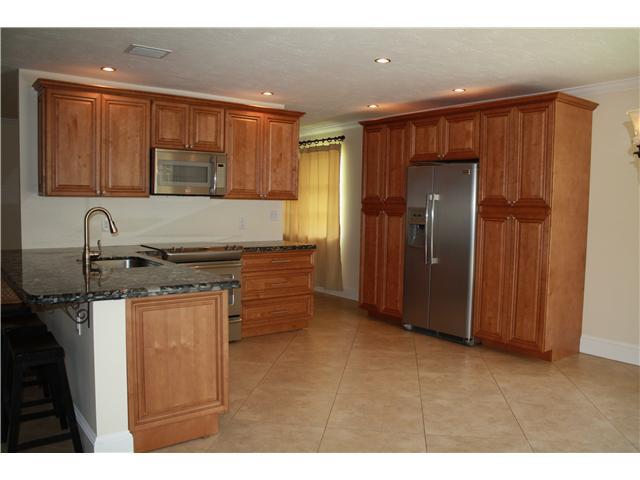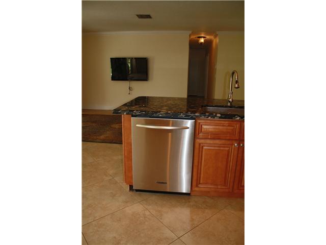 Hurry Hurry! Won't last. Gorgeous 3/2 large tile throughout on a 45 degree angle, high profile baseboards, crown molding and knockdown ceilings, gourmet kitchen with wood cabinets, granite counters and stainless appliances. Bathrooms remodeled with kitche n height counters, custom mirrors. Screened and covered patio, outdoor shower and fenced yard. Upgraded alarm system. TV, garage cabinets and panel curtains in bedrooms are excluded.