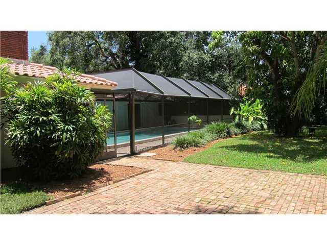 New Listing...Waterfront home with 144 ft across. One-story ranch home with large LR and DR. Eat-in kit. All three bedrooms are huge. Master has two walk-in closets. Bath has 2 sinks, bidet. Other 2 bdrms across house off hall. One has sliding doors t o pool. Jack and Jill bath. 2-car garage. Half bath in foyer. Domed screen pool. Brick patio. Wood dock. Rm to expand or subdivide back bedroom to make extra bdrm. Home needs some TLC but is well priced for waterfront location. List price expected.