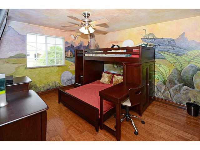 Highly upgraded 4BR/2.5BA. Gourmet kitchen boasts 42" wood cabinets, granite countertop, Brazilian tile & brass accented backsplash & stainless steel GE Monogram appliances plus wine cooler & icemaker. Exotic wood flooring throughout the entire home. Lush ly landscaped & private yard w. perimeter ficus hedges, paver patio, heated & saline chlorinated pool & spa. Other upgrades include accordion shutters on all windows, air conditioned converted garage, security system, landscape lighting.