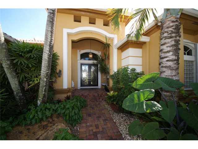 As Good As It Gets! Serene Waterfront Location! Beautiful 4-Bedrooms, 3-Bath Home, 3-Car Garage. Triple Split Floorplan. Pristine Condition! Polished Wood Cabinets & Granite Counters! Family Room Has Custom Built-in Wall Unit with Hi-Def Bigscreen TV! Des igner Touches Abound! Freshly Painted! Convection Microwave Acts as Second Oven! Hurricane Ready! Fully Shuttered & Automatic Generator! Built-in BBQ! Pool & Spa! Sprinklers Feed off Lake! Great for Entertaining! Fabulous and Convenient Location!