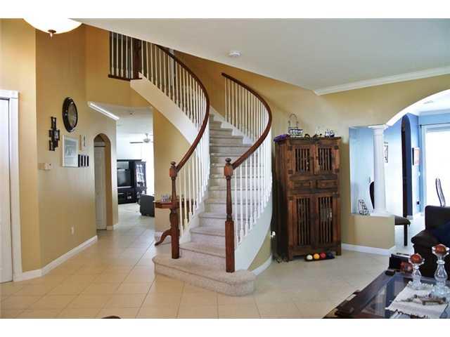 Immaculate Sienna Model with 5 bedrooms and three baths. Elegant spiral staircase leading to the large bedrooms. Tiles through out first floor. Kitchen upgraded with granite counters, stainless steal appliances, and 42" wood cabinets. French Doors lead ing to pavered backyard patio w/ plenty room for pool. Master bedroom has a sitting area and very large closet. One bedroom and bath downstairs.
