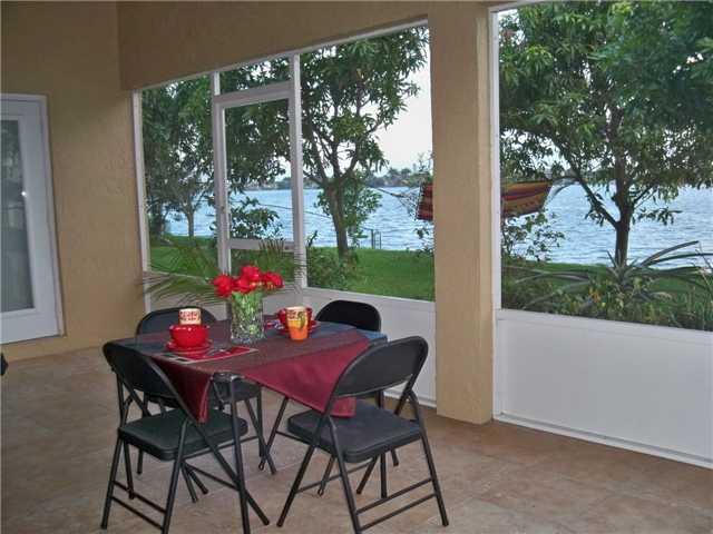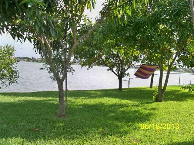 Most Desirable Spacious 4/3 (with In-Law Quarter conversion)in Large Fenced Yard on an Outstanding Lake lot in Your Own Paradise surrounded by Fruit Trees. Two Master Bdrms, Two Master Bath featuring custom tile floor & walls, Roman Tub, his/hers sink. Gl ass shower door. Upgraded Eat In Kitchen w/Black Granite Countertop and Stainless Steel Appliances. Impact Windows and available Hurricane Shutters for Peace of Mind. Plenty of Room for a pool. Screened in Patio under main roof of house.