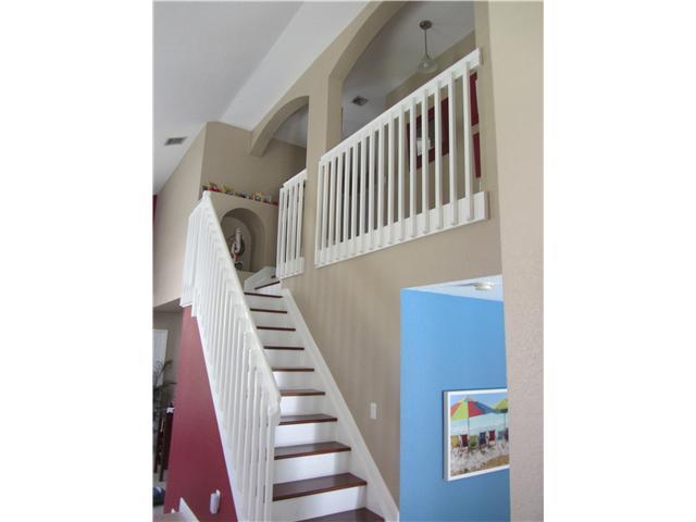 Exclusive Riviera Isles in Miramar. 3 bed, 3 full baths in Portofino subdiv. Original owner. Many upgrades like cherry hardwood floors upstairs, tile downstairs, int. plantation shutters and ext. hurricane accordion shutters. Large fenced-in patio with po ol. Gated community with club house, fitness center and pool that overlooks lake.