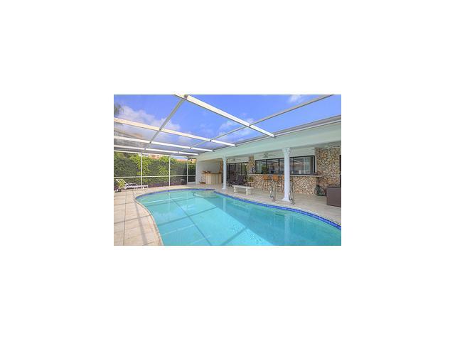 Lovely waterfront custom 3,363 SQ FT 3 BD / 3 BA pool home in highly desirable gated community. Deeded dock on wide canal, pool and great outdoor entertaining area. Large kitchen. Master with pool access. Marble floors and many nice details. Two car garag e and new roof.