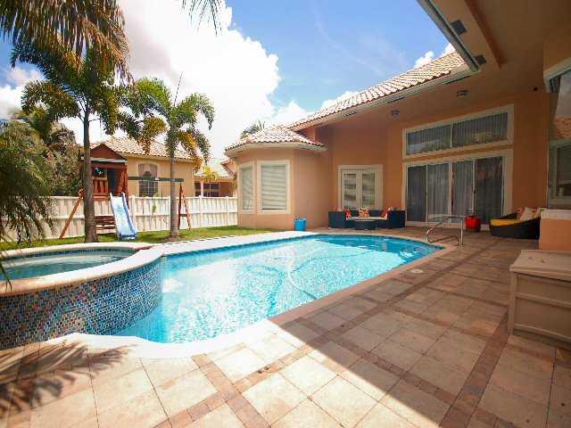 BERKELEY POOL HOUSE MODEL FEATURES 5 BEDROOMS + DEN , LOCATED IN UPSCALE SANCTUARY SUBDIVISION, MARBLE FLOORS IN MAIN LIV AREAS & WOODEN IN BEDROOMS, CROWN MOLDING, FRENCH DOORS, UPGRADED WOODEN KITCHEN CABINETS, GRANITE TOPS, STAINLESS STEEL APPL, WINDOW TREATMENTS, LIGHTS, CHANDELLIERS, UPGRADED BATHROOMS, SPACIOUS FLOOR PLAN LAY OUT, COVERED PATIO, POOL W/RAISED JACUZZI, ALL FENCED YARD. PEMBROKE FALLS RESORT STYLE CLUBHOUSE OFFERS 8500 SQFT HEATED POOL, JACUZZI, TENNIS, BASKETBALL, GYM & MORE.