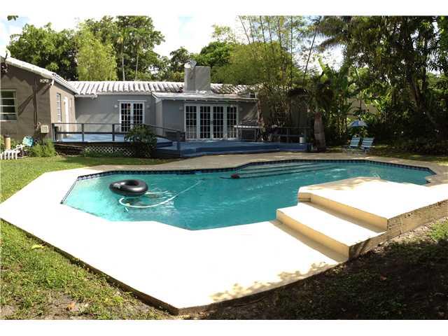 Fantastic Coral Gables Art Deco home now for sale. Original wood floors, wood burning fire place, bright Florida room, stainless steel appliances in kitchen, and split floor plan. Situated on a double lot of 11,875 Sq. Ft. this home has a pool and a very large outdoor wooden deck space, perfect for entertaining. Lots of lush landscaping allow for privacy. Located on a one block street, low traffic and sidewalks make this perfect for families.