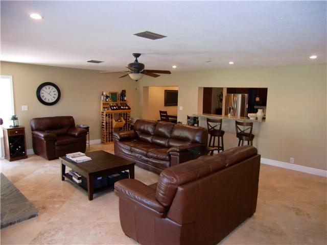 Fabulously updated home in beautiful Hollywood Hills! Phenomenal kitchen with granite counters, wood cabinets, stainless app. & stove hood,island, wine ref., & breakfast bar! Both bathrooms completely updated in high style. Travertine marble floors throu ghout living areas/high-quality wood laminate in bedrooms. Huge family room with working fireplace and French door to exterior. Fenced yard, garden, shed, access to alley for additional parking. Entire electrical system recently updated. A true beauty!