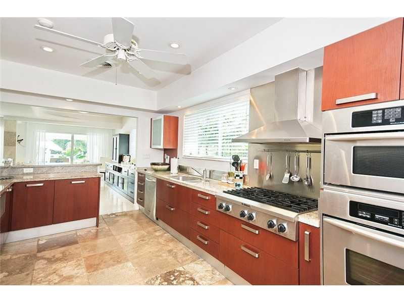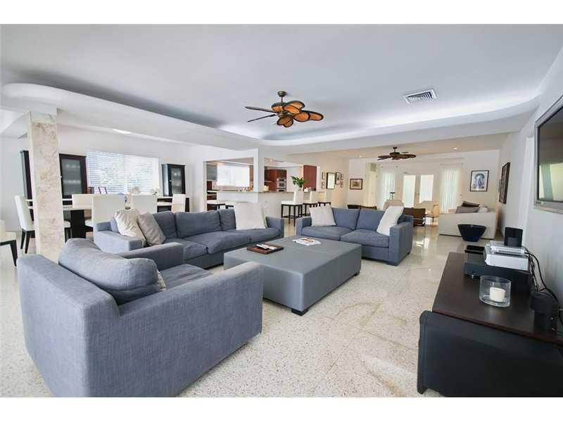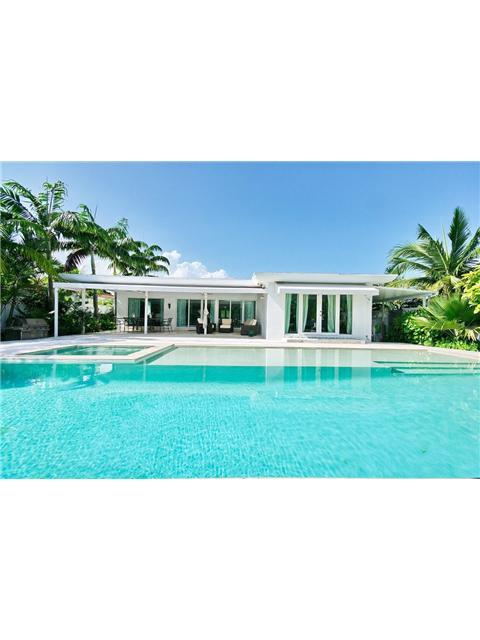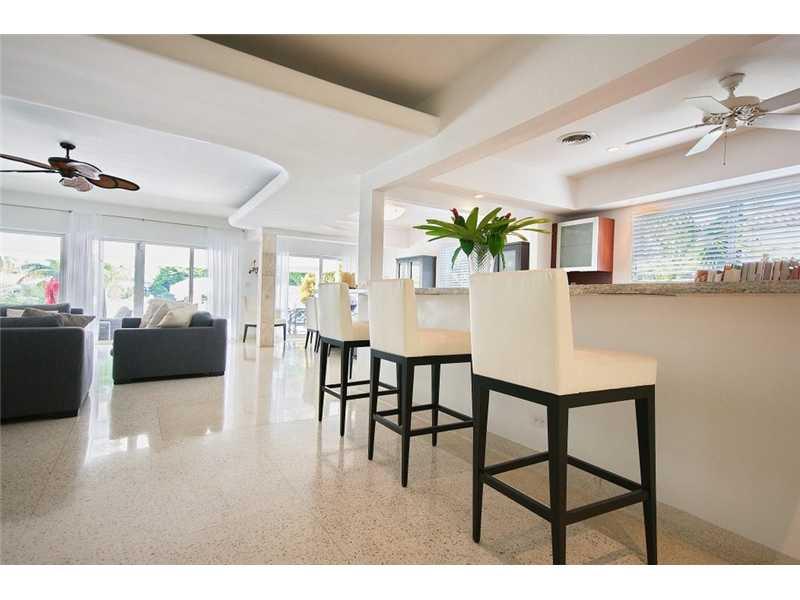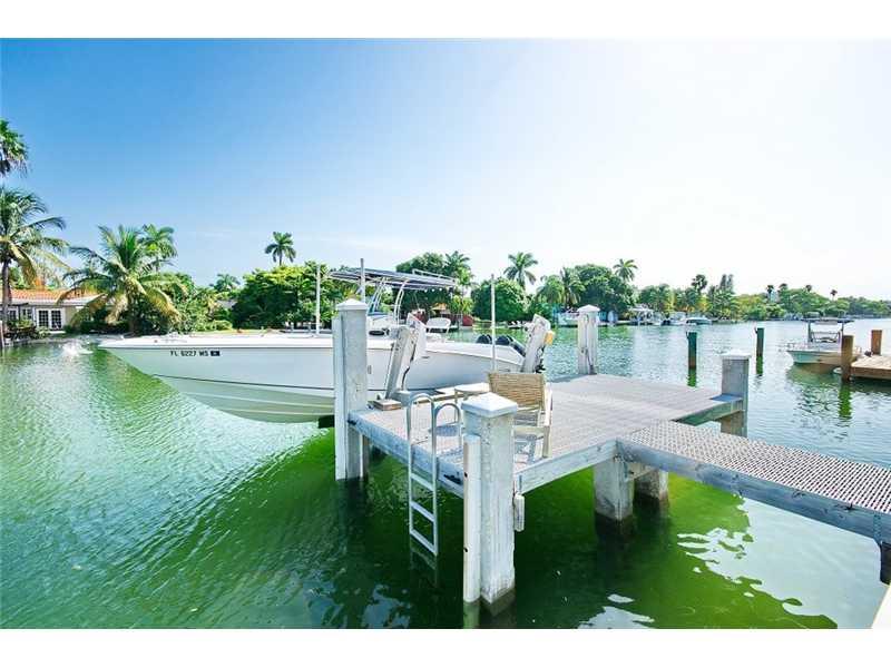 Beautifully refined Mid-Century gated waterfront home on a corner lot with high-end lush tropical landscaping. Relax and enjoy the pristinely maintained large indoor & outdoor entertaining areas that feature a breathtaking infinity pool & Jacuzzi. This ho me has a wide open floor plan, gourmet kitchen, large master suite, new dock, new boat lift and generator.