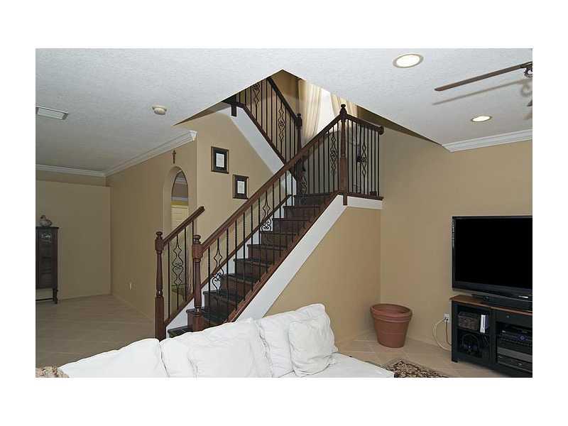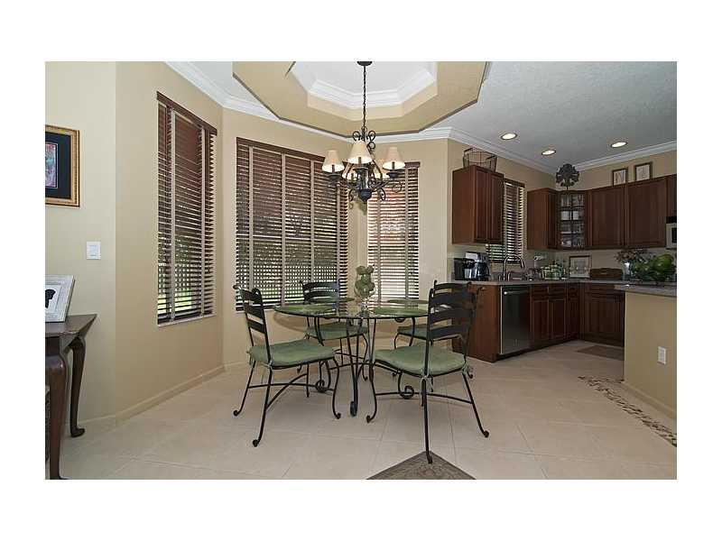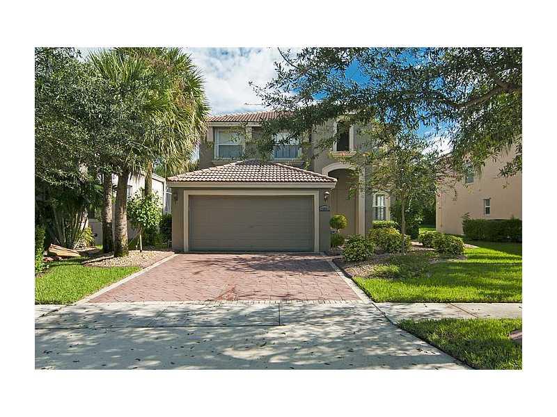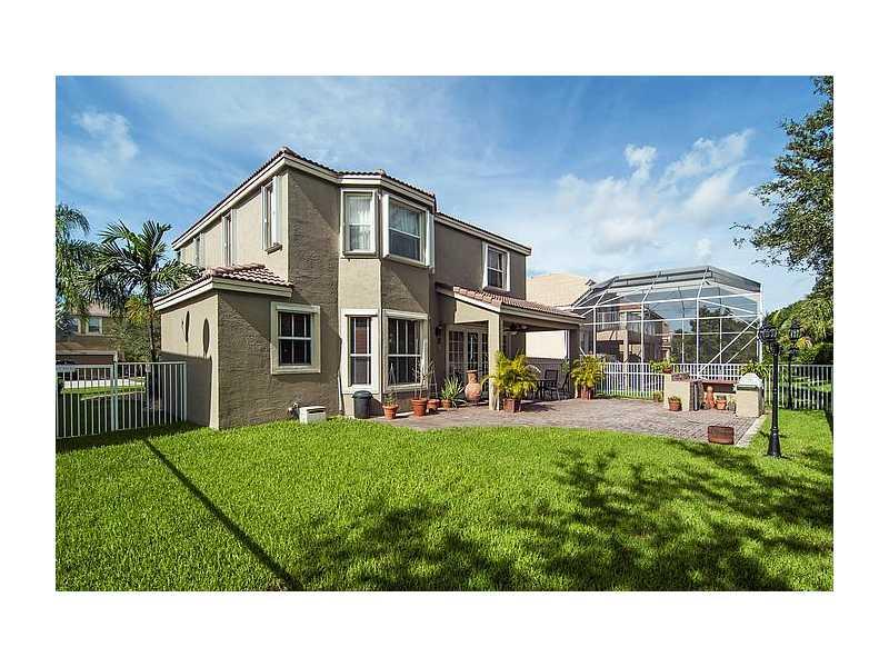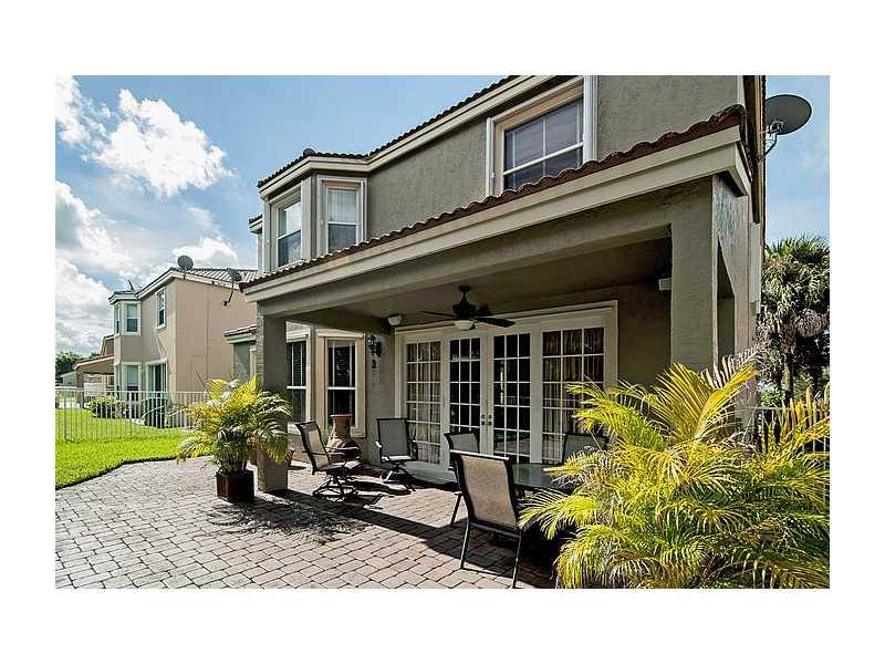 Stunning 4/2.5 home set on private lot with no neighbors behind! IMMACULATE! Beautifully landscaped FENCED yard. Upgraded center island kit w/tall Cherry cabinets & SS appliances, neutral diagonal tile, wood staircase w/wrought iron railing, French doors open to extended paved patio w/summer kit (BBQ, ref & side burner), designer touches (crown molding, chair rail, detailed ceilings, Plantation shutters, cutting edge security system), ACCORDION shutters upstairs, Guard Gated! Comm Clubhouse w/pool & more!