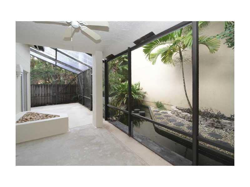 Charming 2/2, IMMACULATE one story home, 1 car garage, FENCED yard, Private setting w/no neighbors behind, Serene view of Zen-like garden w/reflecting pond, wrap around screened patio, split bedroom plan, large tile in living areas & NEW carpet in bedroo ms, NEW roof (3 mos.), ACCORDION hurricane shutters, steps to community pool & Town Center.