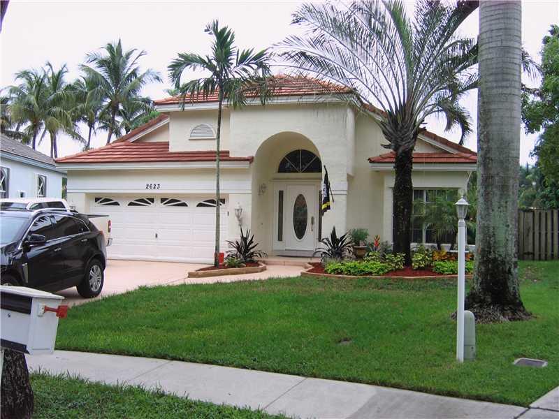 Fantastic one story 3 bedroom pool home with 110' of lake frontage. Completely remodeled kitchen with 6 burner stove top. Fence around pool separates pool from enormous back yard on pie shaped lot. Laminate flooring in 2 bedrooms. Pool pump and Irrigation Pump are brand new. A/C and hot water heater are 2 years old. Hurricane shutters included. Great home for young family or empty nesters in magnificent Embassy Lakes gated community. A rated schools.