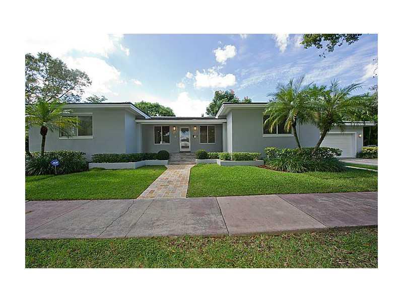 Beautiful completely remodeled 3 bed 2.5 bath home on corner lot located on desirable Golden Triangle. New Kitchen with white cabinets, quartz counter tops and SS appliances. Open and spacious floor plan. Large Family Room with French doors leading to int erior court yard and garden terrace. Impact glass windows and doors, new 2013 roof, new A/C, refinished hardwood floors, 2 car garage. Ready to move in. Truly a visual feast.